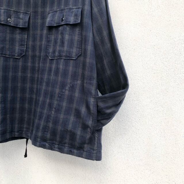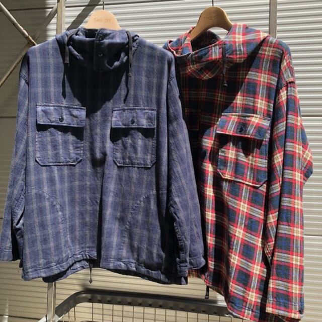 プルオーバーのフーディをシャツ生地で制作したEngineered Garmentsの定番シャツ☆軽めのオンスのチェック柄フランネル素材を使用し、1枚で大活躍のアイテムです